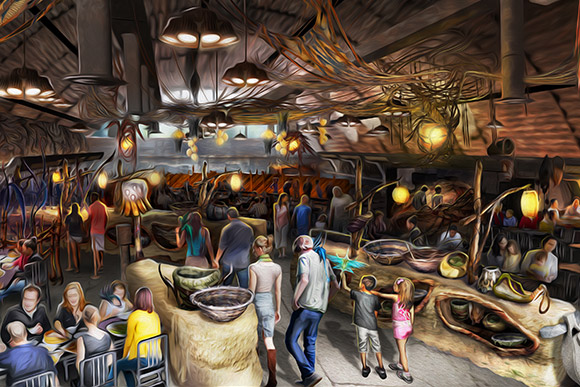 Sustenance in the land’s Satu’li Canteen (the natives pronounce it “sa-too-lee”) is inspired by the healthful bounty of Pandora — wholesome grains, fresh vegetables and hearty proteins. The Na’vi didn’t eat much funnel cake.