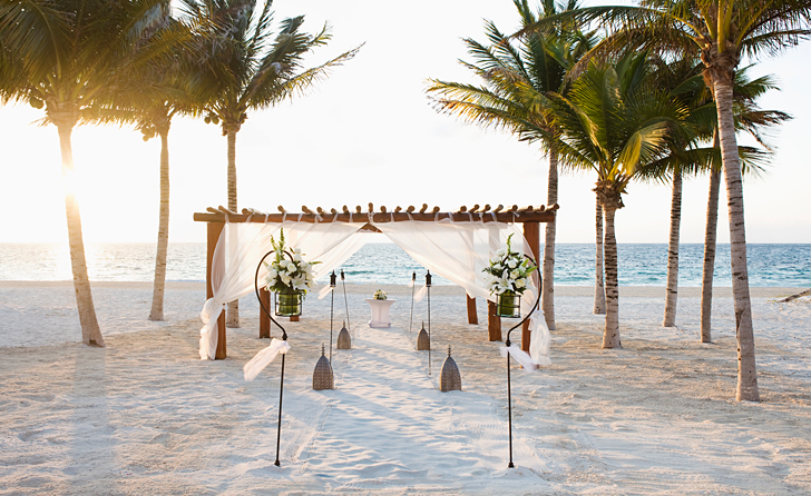 Excellence Resorts have adults-only properties in the Cancun and Riviera Maya region, as well as in Punta Cana. They offer three wedding packages you can choose from as a base to customize. They each include everything you’ll need for your wedding from the venue for the ceremony, a horse-drawn carriage entrance for the bride, the bride’s bouquet and the groom’s boutonniere.Depending on the package you select, it could also include a special cocktail hour and dinner, floral centerpieces, a larger cake, hair and makeup for the bride and much more. Pricing for these packages can work for almost any budget.