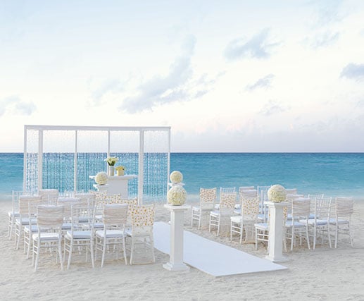 For one thing, their wedding collections are gorgeous, designed by famed event designer Colin Cowie. Each collection, even the complimentary package, accommodates up to 30 guests, more than many other resorts. Each package includes themed ceremony décor, bouquet and boutonniere, cake and sparkling wine, and dinner for you and your guests at one of the resorts’ restaurants.