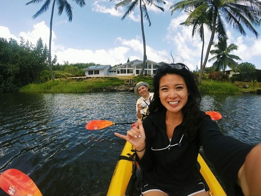 Our tour guide, Cody, was awesome. He was extremely patient and a lot of fun. He really knew his stuff and was an excellent guide. We hopped on the shuttle, which took us to the Wailua River. Kayaking on the river was really relaxing – no major rapids or anything – and the view of the mountains was amazing.