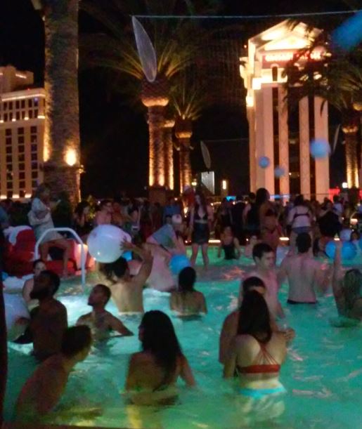 The whole concept of Drai’s is basically a pool party after dark. There are beach balls, music, people in the pool, and at one point they even did a balloon drop into the pool. Just be aware that drinks are pricey here. I ordered one that was $18. It was delicious, but still.