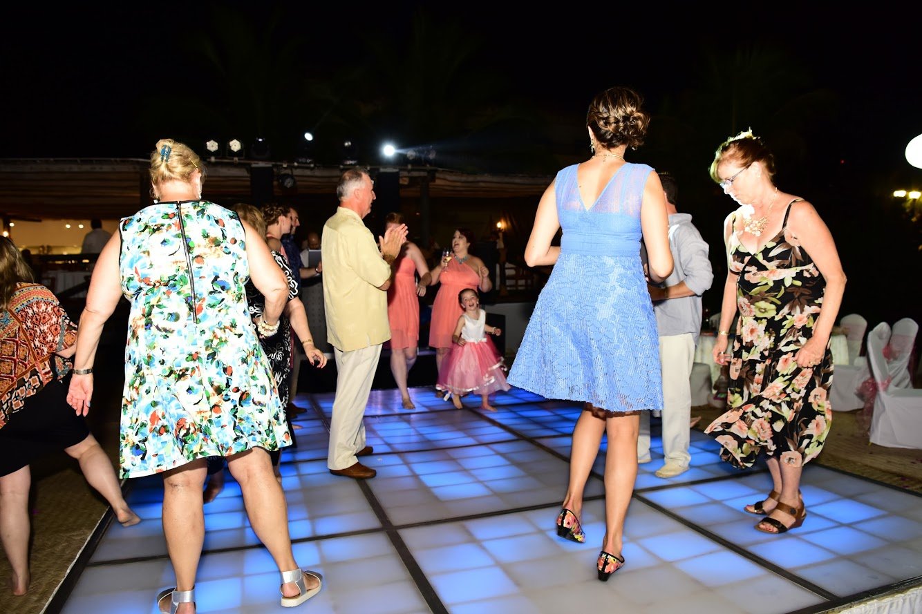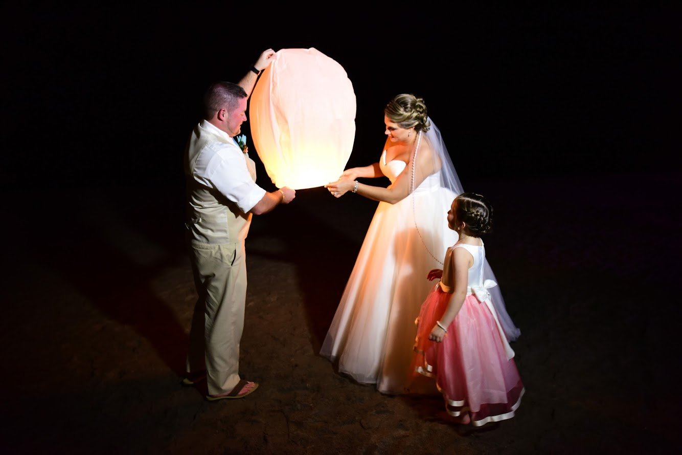 Cocktail hour followed seamlessly with appetizers and a premium bar at the La Ribera Garden as the photographer rotated guests for pictures with the bride and groom on the beach terrace facing the ocean. Romantic songs echoed in the background embracing the spirit of the unique destination of Puerto Vallarta at sunset. The wedding guests were guided to their tables at the perfectly-lit reception on the beach. The wedding events flowed easily in its exclusive corner of the resort, making this a private event for the wedding group only. The evening was filled with many tear-jerker moments of champagne toasts, special dances, a live performance by one of the bridesmaids and the release of Chinese lanterns to honor the remembrance of loved ones that have passed. All emotions aside, they celebrated and danced the night away!